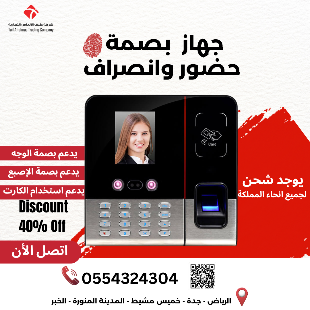 حصرياً من شركة طيف الألماس التجارية - عرض خصم 40% على أحدث أجهزة البصمة ارتقِ بنظام إدارة الموارد البشرية في منشأتك مع جهاز الحضور والانصراف المتطور، المصمم لتوفير أعلى مستويات الدقة والسرعة في تسج...