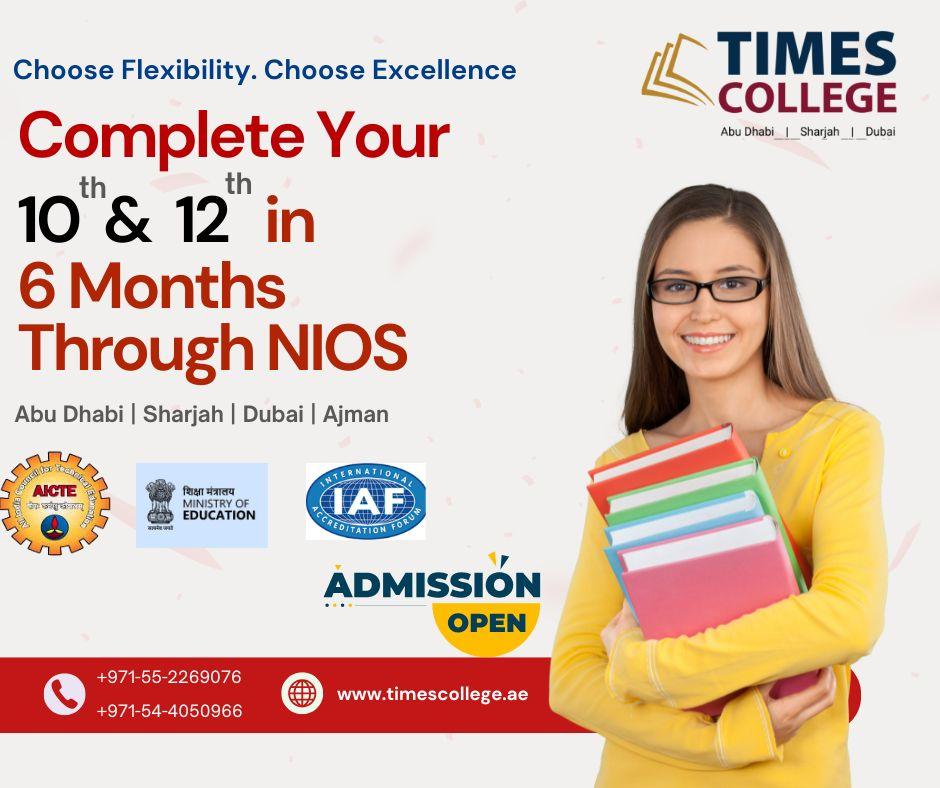 Study at the NIOS Center in Sharjah at Times College and benefit from personalized guidance and academic support.