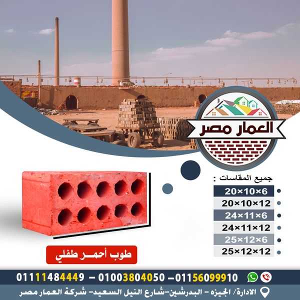 شركة العمار مصر تقدم طوب أحمر طفلي جميع المقاسات لكل مكان في مصر توصيل في 48 ساعة بخبرة 45 سنة في تصنيع وتوريد الطوب الطفلي الأحمر لكل أنحاء مصر وباعتماد كبرى شركات المقاولات الطوب معتمد من مع...