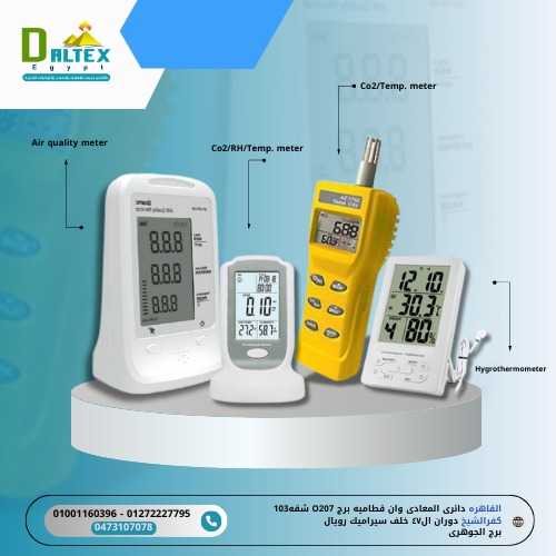 يتوافر الان بضاعه حاضرة اجهزه قياس جوده الهواء ورطوبة وحراره الجو وثانى اكسيد الكربون، كما يتوفر ايضا اجهزه سمك المعادن والحراره عن بعد ورطوبة الحبوب /برسيم/خشب/ورق/خرسانه.....الخ كما تعمل الشركة عل...