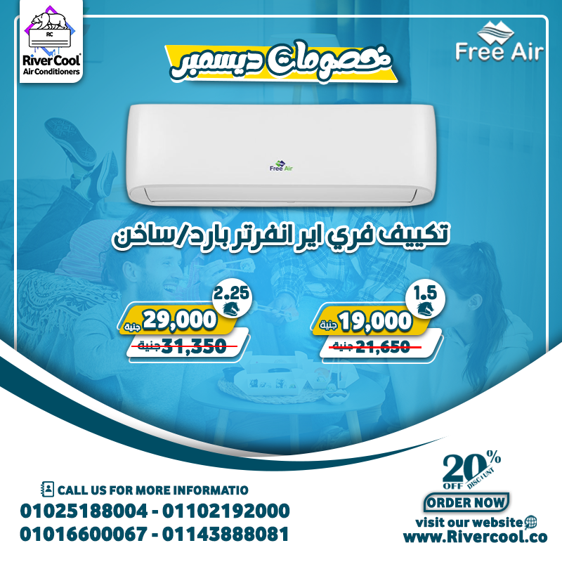 Air Conditionersعروض رمضان القوية من River Cool عرض خاص على جميع قدرات تكييف Free Air خصومات حقيقية لحد 30% والأسعا
