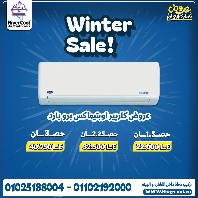 عروض ريفر كول قلبت الموازين التوفير عندنا حقيقي والسعر دايمًا الأقوى تكييفات جاهزة لكل الفصول تبريد فقط أو بارد وساخن عادي أو إنفرتر موفر للكهرباء في River Cool هتلاقي كل البراندات العالمية...