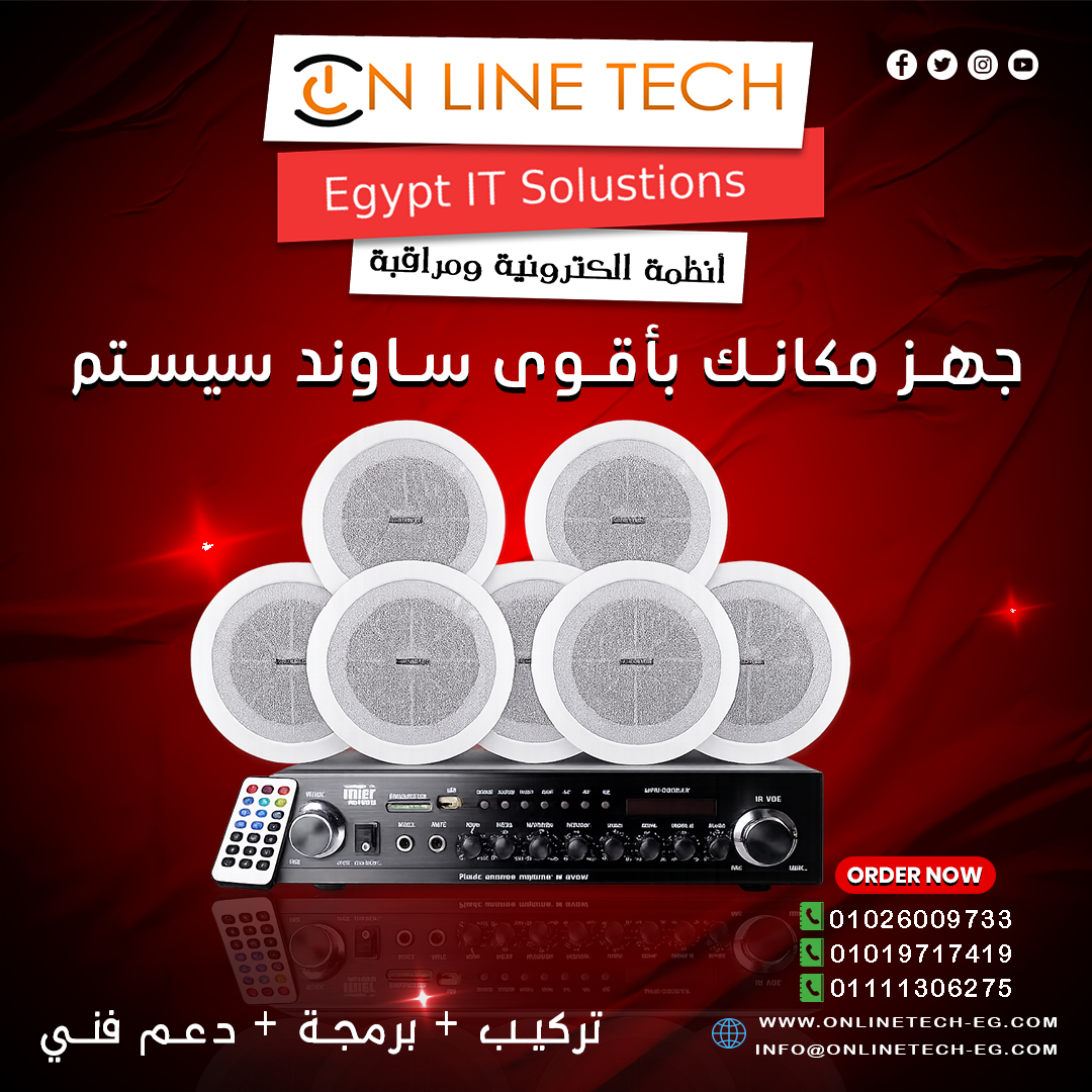 أجهزة الساوند سيستم من أون لاين تك 🔊 نقاء صوت، توزيع مثالي، وأداء ثابت يناسب القاعات، الشركات، والمحلات. ارفع مستوى الصوت… وارفع تأثيرك. خلّي صوتك يوصل صح 🎧✨ متوافره في شركة اون لاين تك On Lin...